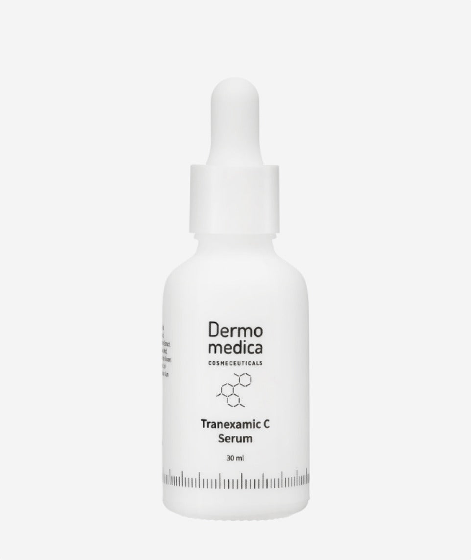 Active serum with vitamin C, tranexamic acid and growth factors. The serum has brightening, depigmentation and anti-aging properties. Tranexamic acid has strong brightening and blood vessel strengthening properties. It reduces hyperpigmentation, melasma and vascular discolouration, helping to achieve an even skin tone, even skin prone to erythema and high sensitivity.